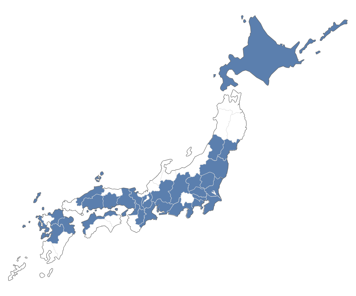 活動実績のある都道府県 2024年2月現在(青地)